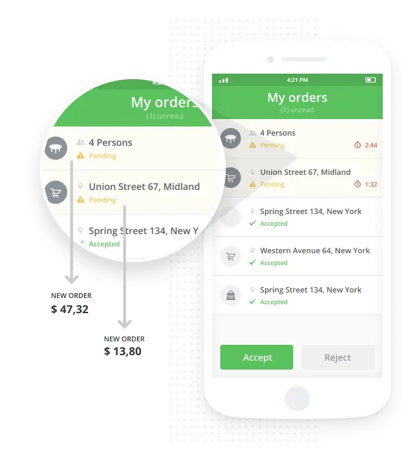 Cu doar o atingere a ecranului, poti sa confirmi instantaneu comenzile cu ridicare sau livrare la domiciliu.